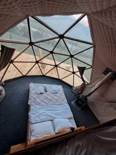Вы будете жить в гостевых домах с односпальными кроватями, душем и туалетом. На территории есть ресторан, банный комплекс и горячий чан, работает мобильная связь и Wi-Fi.