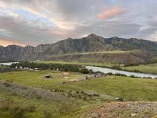 Сегодня вы встаете рано, чтобы увидеть, как первые лучи солнца окрашивают Северо-Чуйский хребет в розовые тона (если повезет с погодой).