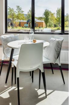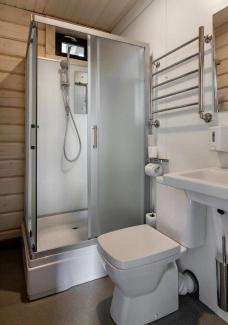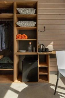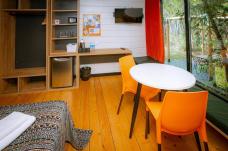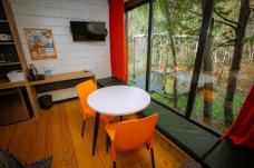 Вы будете жить в домике с 1 двуспальной или 2 односпальными кроватями, телевизором, мини-холодильником и собственным санузлом с душем.