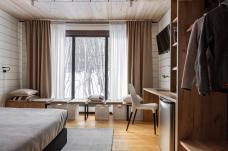 Проживание было организованно в очень приятной гостинице на природе, которая радовала богатым сервисом, окружающими пейзажами, уютной атмосферой, а также хорошей кухней! Однако, при проживании случилась нештатная ситуация: из-за выхода из строя насоса где-то на полтора дня была отключена горячая вода и отопление. Администрация гостиницы предоставила желающим ключи от отдельных номеров с обогревателями.