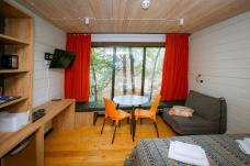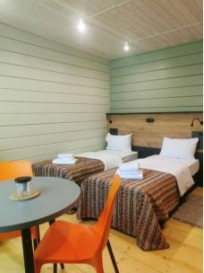 Комплекс «Гостевая Деревня» включает 42 номера стандарт и 3 номера комфорт. Вы будете проживать в номере с 1 двуспальной или 2 односпальными кроватями, телевизором, мини-холодильником и собственным санузлом с душем.